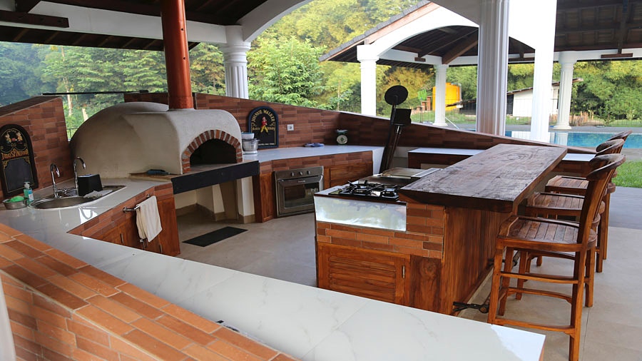 One of the sides contains the 16m pool, the other resto with Wood Fired Pizza, Teppanyaki and BBQ….